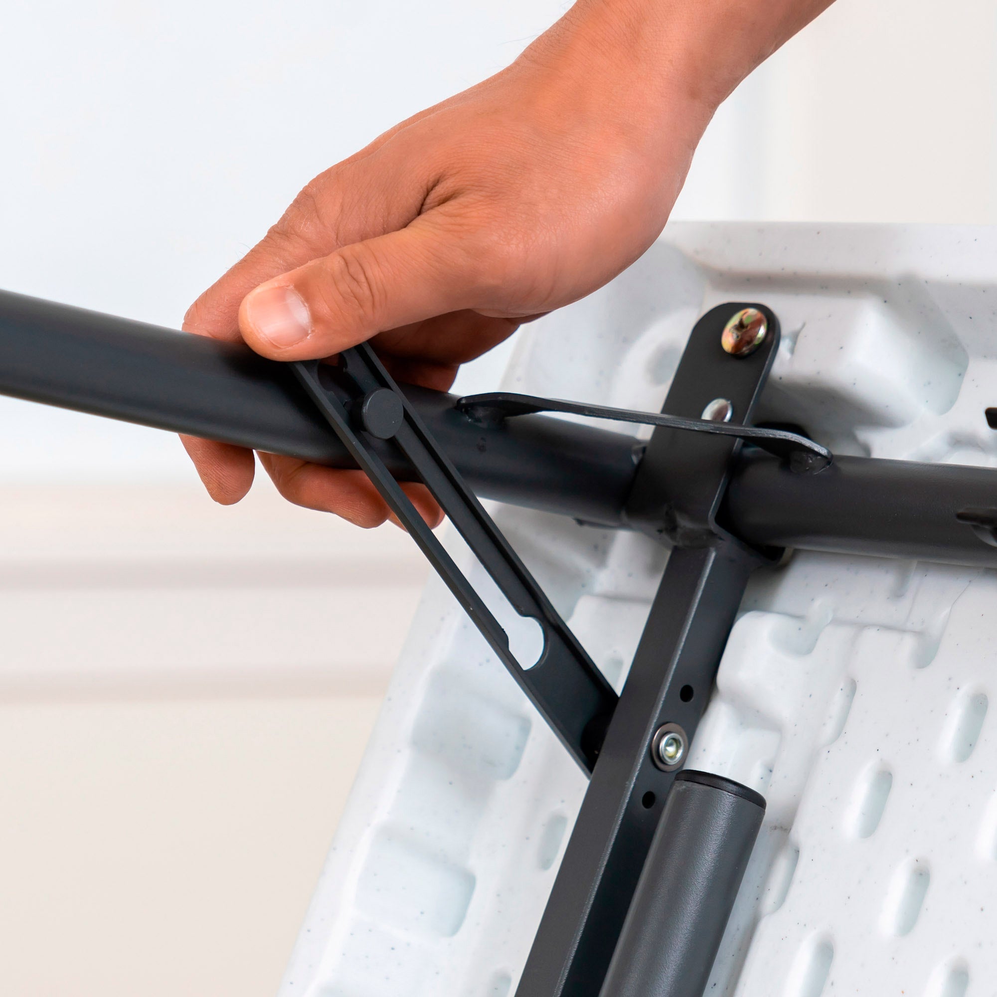 - Mesa plegable cuadrada: medidas 94x94x74 cm, con esquinas reforzadas, sistema de bloqueo de seguridad, plegado por la mitad y asa de transporte